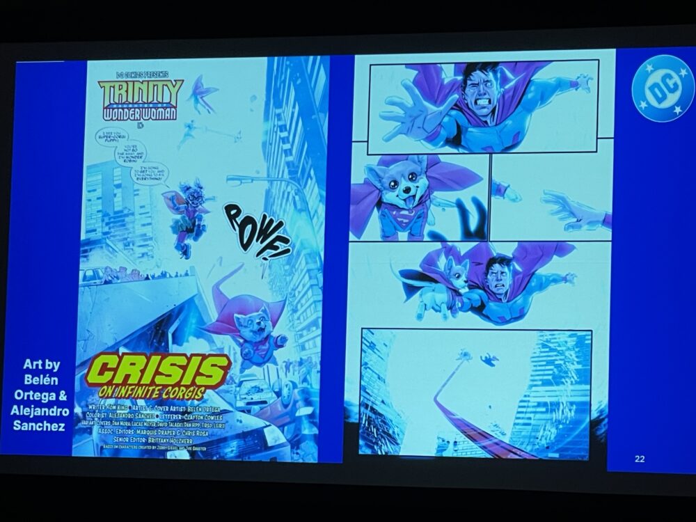 “I made a joke to Tom King a few years ago, and he went too far with the joke. Because I told him I like to draw samurais and corgis, because I have two at home. They are the silliest dogs in the world,” Ortega said.