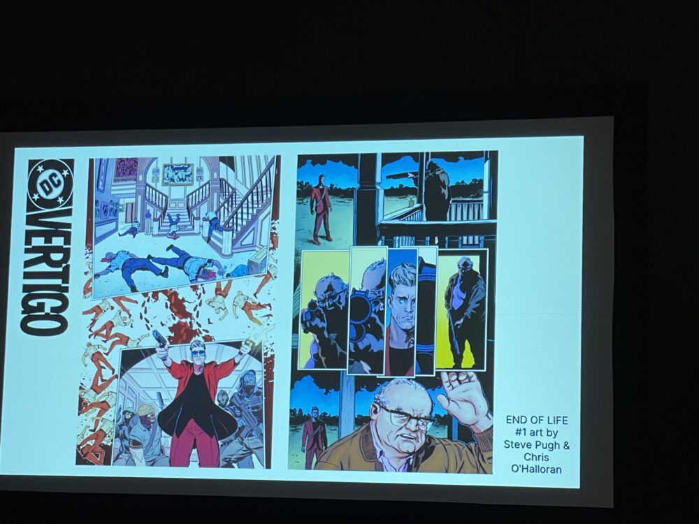 The panel swerved briefly to the DC Vertigo side of things with a spotlight on Kyle Starks and Steve Pugh’s End of Life and Chris Condon and Jacob Phillips’ Peril of the Brutal Dark.