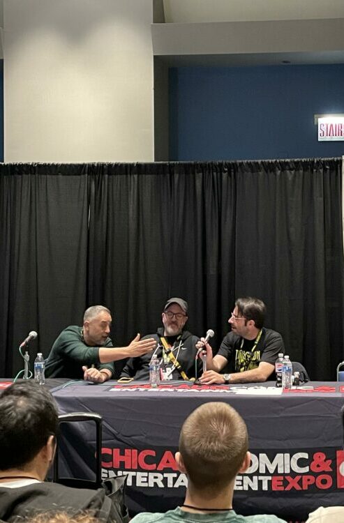 During a Saturday afternoon panel at C2E2, Boom! Studios’ Anthony Mauro was joined by writer James Tynion IV (Something Is Killing The Children, The Nice House On The Lake), artist Michael Dialynas (ZAWA The Belly Of The Beast, WYND, TMNT), and artist Werther Dell’Era (Something Is Killing The Children) to celebrate a decade of Tynion at the publisher.