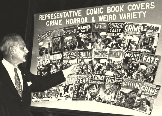 Today, looking back, it isn’t surprising that EC is eternally linked to the Juvenile Delinquency hearings of the 1950s. They are famously known for their shocking horror comics which have survived the test of time thanks to the talented artists who worked on them and the notoriety they have gained. However, when the subcommittee was formed and comics were introduced to the agenda, thanks in part to Senator Estes Kefauver who was eager to make a name for himself, the contents of the comics were only a small part of the inquiry, and it was acknowledged that only a small proportion of the comics in circulation contained questionable material. Part of the hearing was handed over to the infamous Fredrick Wertham, whose testimony, based mostly on his book Seduction of the Innocent, was primarily focused on the superhero and crime genre. It’s also worth noting that Wertham wasn’t the influential figure that history has comic book fans believe. As noted in Shawna Kidman’s Comic Books Incorporated, “Despite Wertham’s role in getting comic books on the public agenda, his ideas were not universally or even widely embraced” (1).