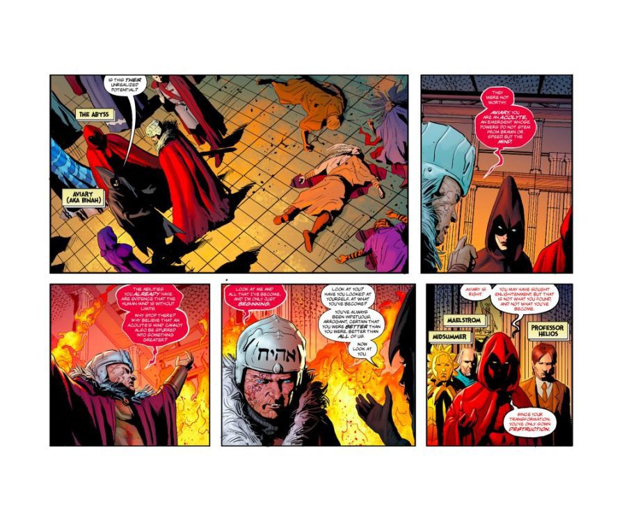 A corrupt king with devastating powers, sinister siblings from beyond the grave, and a criminal cult leader–all this and more await readers of THE ABYSS! The Red King will shock and terrify you as the origins of this fallen acolyte are revealed. Meet the team of mighty Emergents who first defeated him and his three deathly daughters! The Abyss used his infamous mind control to help seal away the Red King last time, but can he muster the strength to do it again? As robotic villain Daddy-2.0 threatens to resurrect the Red King and take over the masses, can the Abyss and his team protect Culverton from the combined power of these two evil forces? Heroes will clash and terrible sacrifices will be made in THE ABYSS #4!