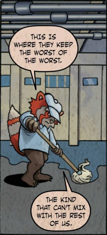 KD: Following The Tuffening, I wanted to scale down the stakes a little and focus on crafting the best story possible.  Prison seemed like the purrfect setting. Truly self-contained. A way I could cycle the emotions, torments, and breakdown of a character.  It’s the best place to show how truly Tough this cat can be.