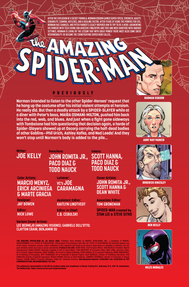 The issue is by writer Joey Kelly, and artists John Romita Jr., Paco Diaz, & Todd Nauck, with additional inks by Scott Hanna, colors by Marcio Menyz, Erick Arciniega, & Marte Gracia, and letters by Joe Caramagna. The main cover is by John Romita Jr., Scott Hanna, and Dean White.