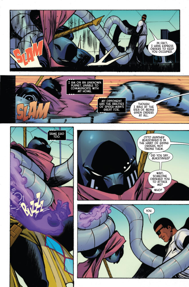 BLACK PANTHER: INTERGALACTIC #2 hits your local comic book store on January 21st, but thanks to Marvel Comics, Monkeys Fighting Robots has an exclusive three-page preview for you!