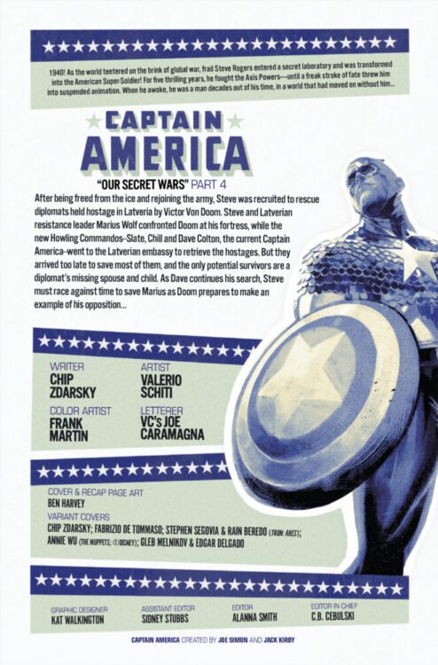 The issue is by writer Chip Zdarsky and artist Valerio Schiti, with colors by Frank Martin, and letters by Joe Caramagna. The main cover is by Ben Harvey.