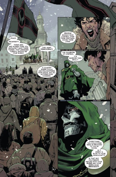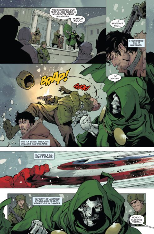 It’s a showdown between DOOM and CAPTAIN AMERICA with the fate of Latveria hanging in the balance! As Doom prepares a fatal strike against those who stand against him, a sudden betrayal has Cap on the ropes and questioning everything he thought he knew…