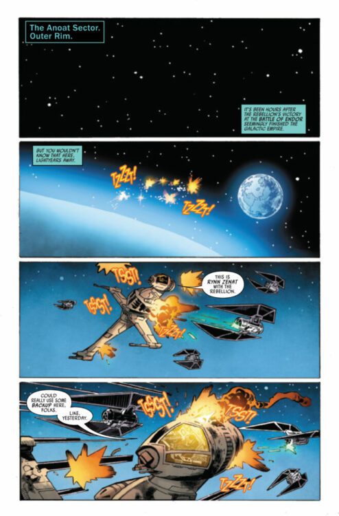 STAR WARS: THE BATTLE OF JAKKU — INSURGENCY RISING #1 hits your local comic book store on October 2nd, but thanks to Marvel Comics, Monkeys Fighting Robots has an exclusive five-page preview for you!