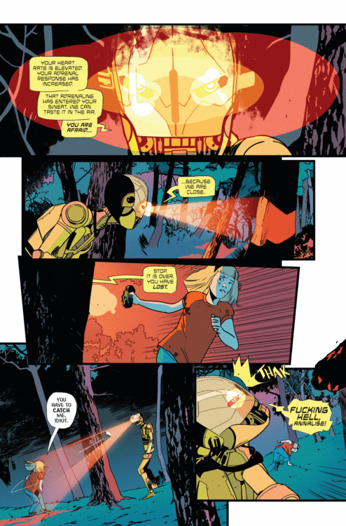 MR: I don’t think I’m exactly weird in this, but I also have talked to enough of my peers about process to know it’s not how everyone works. I start with characters and relationships and build the world and the story up from there, and not vice versa. I think a lot of what we forget in comics, especially in the days of IP farming publishers and people chasing the Hollywood bag, is that what makes people come back every month and spend $4 or $5 on a story is caring about the characters. That goes back before Homer and Aesop. Although I don’t know how much they charged per issue. Character is at the heart of what we’ve always done. It’s cool if you have an awesome idea for a time travel story about Hamlet or figured out how to do John Wick in space, but if I don’t give a fuck about Cyborg Hamlet or Martian John Wick as people then none of that matters.