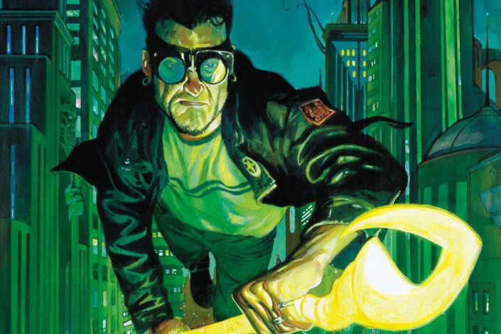 Starman’s story begins with tragedy. We first meet the new Starman, David Knight, just after taking up the mantle from his father, Ted Knight. Eager to continue the legacy of his Golden Age hero dad, he ascends with the Cosmic Rod of old – only to be shot out of the sky. Davey’s sudden death spurs the younger Knight son, the rebellious Jack, into action. Up until this point, Jack’s treatment of the Starman title ranged from disdain to indifference. The tattoo-clad collector of historic junk held little regard for his father’s super heroics – the very attitude that led to Davey wielding the cosmic rod instead. This guilt leads to Jack’s reluctant assuming of the title after his brother’s murder, albeit with some caveats. Gone is the Golden and Silver Age red and green skin-tight costume, replaced by Jack’s leather jacket and goggles. Guided by his father and the many allies he gains along his path – including the mysterious anti-hero and fan-favorite character The Shade – Jack Knight grows from hesitant avenger to cosmic explorer and even to family man across his 80-issue journey.