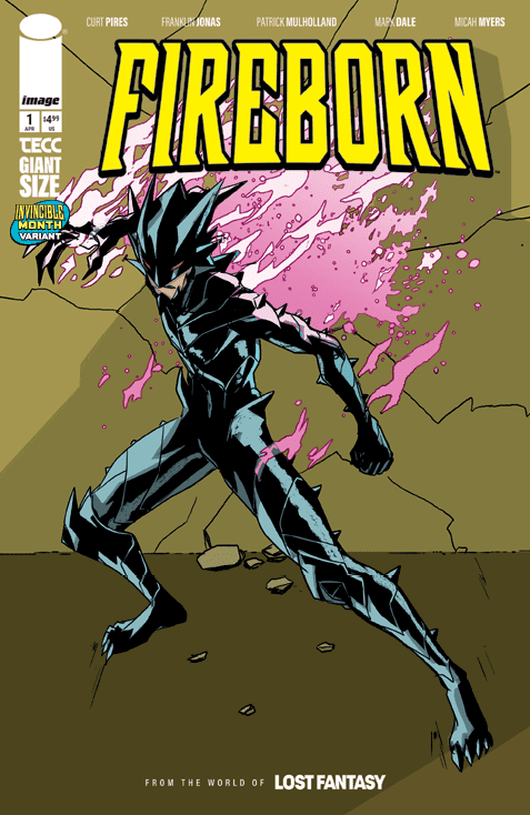 From the creative pair of Curt Pires and musician Franklin Jonas & artist Patrick Mulholland comes an edgy-fantasy throwback to comics of the 90’s with Fireborn #1. Featuring color art by Mark Dale and lettering by Micah Myers, this opening issue throws readers right into the action with a style that is a mix of classic TMNTHighlander, and that very era of Image books. With a suitably campy script and high-octane, incredibly well-drawn action, Fireborn is a must for fans of that classic 90’s edge.