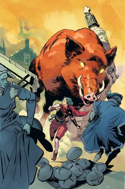 Will Morris is an even more impressive artist than he is a writer, which makes Gospel #1 an even more insane achievement. His densely detailed environments and beautifully animated characters pull readers into the story with ease. His Miyazaki-inspired historical-fantasy direction is remarkable to experience, with Morris crafting one of the most memorable settings in comics this year. His sequential direction stays busy as well, with pages being filled with numerous panels that carry both action and quieter moments along with a perfect sense of pace. The visual experience is rounded out by Morris’s vivid and varied color palette, which is some of the most stunning work I’ve seen in a comic this year. His work here is very similar to Mat Lopes’s work in comics like The Dreaming, with a style that retains a sort of familiar realism while being airy enough to pass off as fantasy. This is a visually stunning comic, and I can’t wait to see how Morris presents it as the plot thickens.