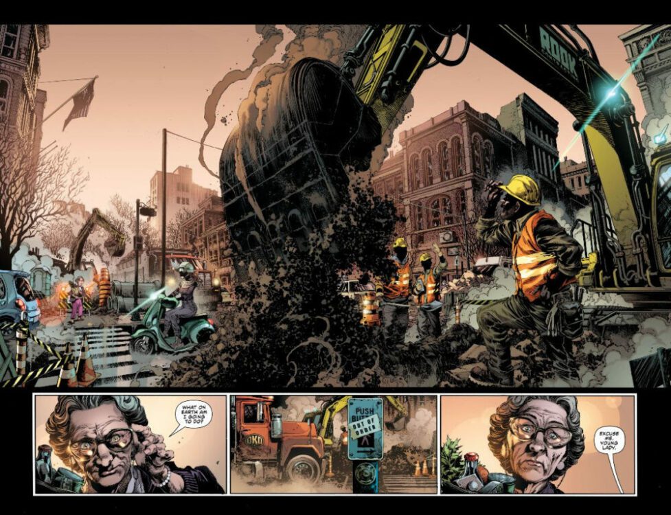 As mentioned, Hyde Street itself feels like a character in the story, and that is largely due to how vividly it is portrayed. There is no lack of detail and focus in each part of the story. As early as the first few pages, characters are portrayed up close and hyper realistically, and there are clear and bustling environments behind them. On a second read, it is easy to spot shadowy figures lurking behind places, and lights on in apartments — all small but important details that make the street be alive.