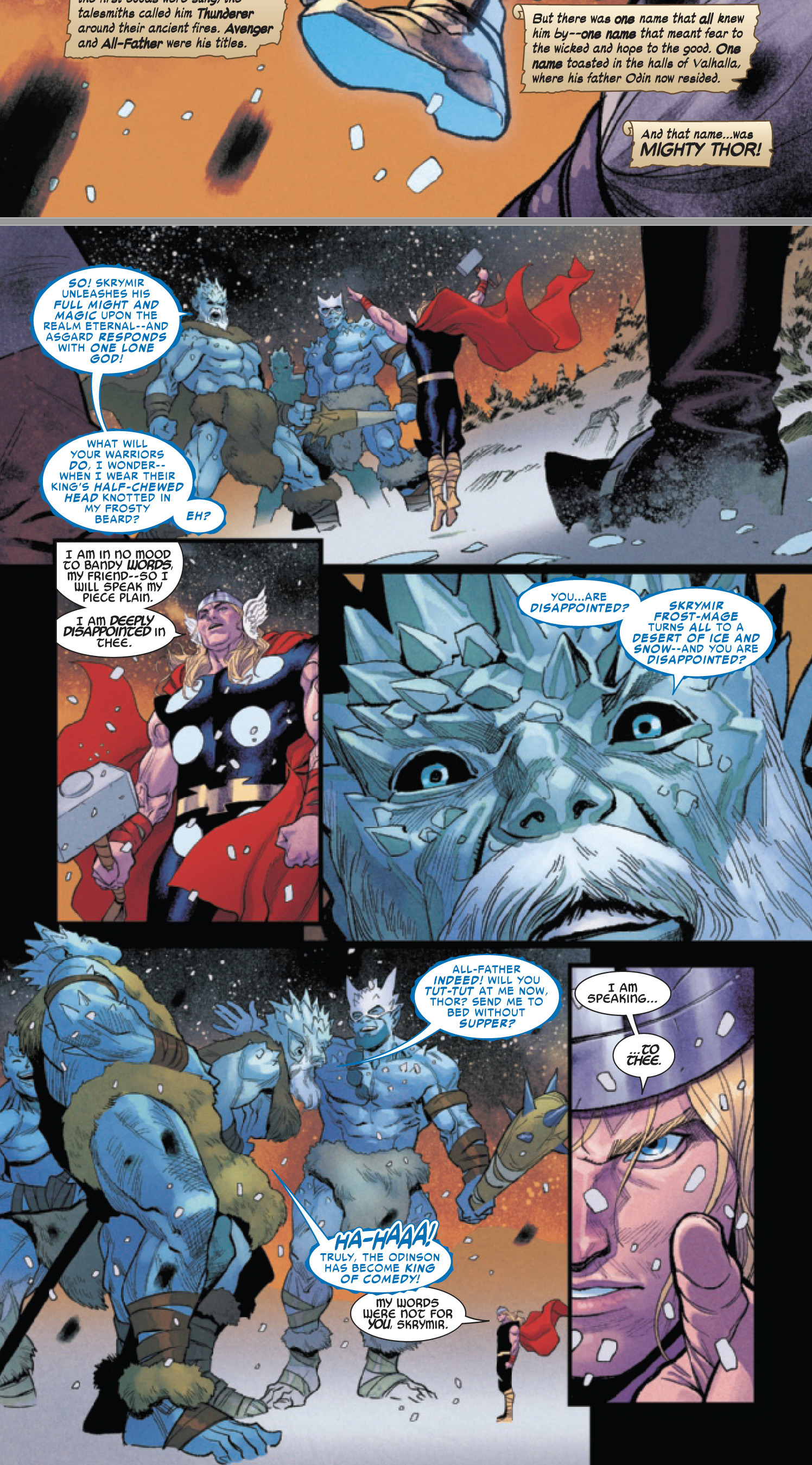 In Norse myths, they called him Thunderer. Vuer has he been called, and Hloriddi. The Gods know him as Asgard’s King, keeper of Mjolnir, hero of the tales. When injustice grips the Earth and ancient powers bring down the sky, he fights for those who cannot—and when the tale is done, we will know what that cost him. This is the story of THE IMMORTAL THOR. PLUS: A bonus page written by Jonathan Hickman—WHO ARE THE G.O.D.S.?