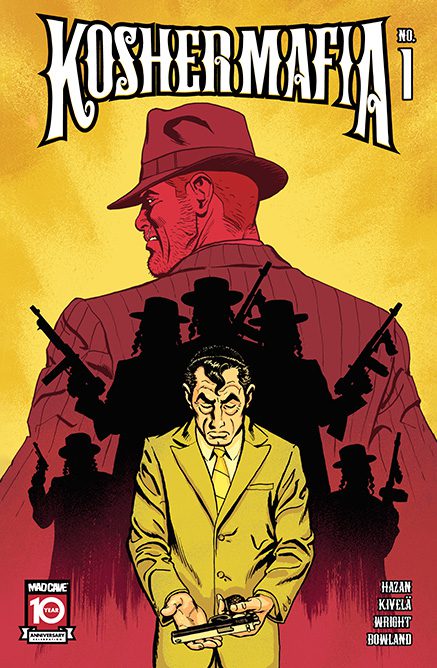 It starts with a wooden suburban house surrounded by trees. A classic 1930s Ford two-seater is parked out front, and a man in a pinstripe suit is walking up to the front door. The first brown-heavy panel sets the scene and the tone for the first issue of Kosher Mafia published by Mad Cave Studios. Written by David Hazan and drawn by Sami Kivelä, Kosher Mafia is a mobster story told in the classic gangster style, with ultra-violent sequences nestled between boardroom meetings and family drama. Flashbacks and plotting are the highlights to describe this first issue, and you are in for a treat when it is released on August 7th.