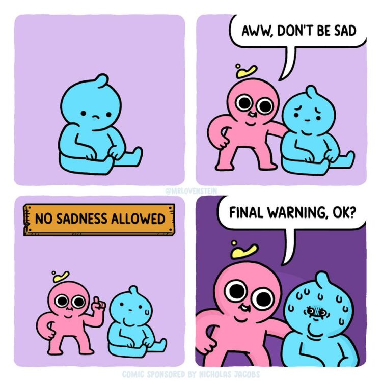 For those unfamiliar with Westover’s work, each Mr. Lovenstein comic typically features two overexpressive (and by his own admission, sweaty) characters, engaged in conversation. The comics are usually 3 to 4 panels long, though included in this book are also Mr. Lovenstein’s signature bonus panels, which typically add a secondary punchline to the previous comic. The jokes here are all relatable, ranging from intrusive thoughts, nihilistic tendencies, to just simply absurd scenarios. At first glance, Westover’s book seems like just a collection of his comics, bundled together wholesale, yet after diving in, you can see a clear vision and flow to properly present the promised feelings. The author himself states they tend to write from a layer of separation from the work, to not allow themselves to bleed too far into it, yet the comics clearly show otherwise. As a whole, the book is an invitation to the reader to smile more, to cry more, and to generally feel more.