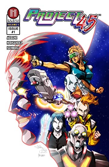 Project 45 #1 published last month, is the first comic from a new indie publisher Enigma Resolve created by founder Kal Mebane. It’s a throwback to the late 80s and early 90s sci-fi animation. Joining Kal is his co-writer Yelena Mebane, co-penciler Jay Hernandez, and inker Jake Isenberg. The comic is available on their website store in multiple formats, while Comixology and select comic stores have the full-color version.